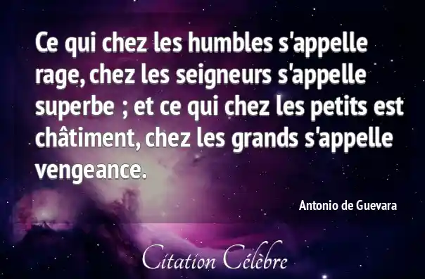 Ce qui chez les humbles s'appelle rage, chez les seigneurs s'appelle superbe ; et ce qui chez les petits est châtiment, chez les grands s'appelle vengeance.