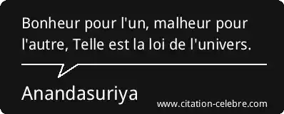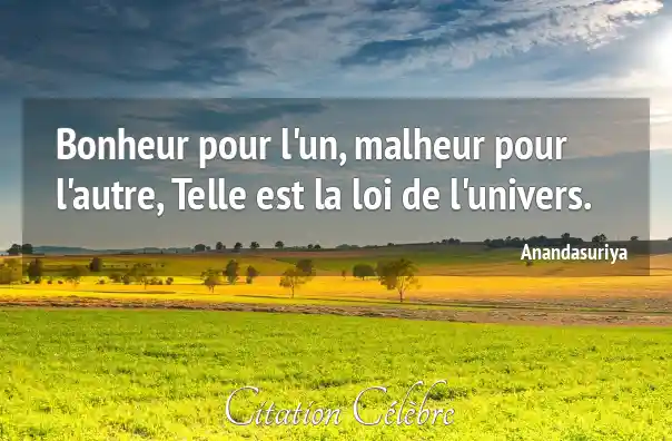 Bonheur pour l'un, malheur pour l'autre, Telle est la loi de l'univers.