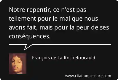 Notre repentir, ce n'est pas tellement pour le mal que nous avons fait, mais pour la peur de ses conséquences.