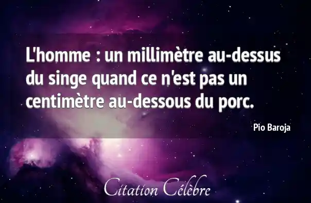 L'homme : un millimètre au-dessus du singe quand ce n'est pas un centimètre au-dessous du porc.