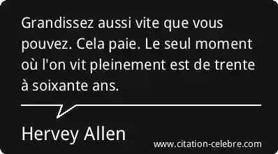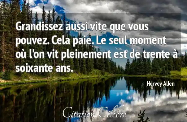 Grandissez aussi vite que vous pouvez. Cela paie. Le seul moment où l'on vit pleinement est de trente à soixante ans.