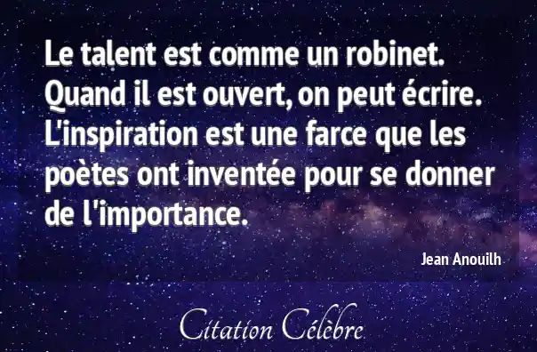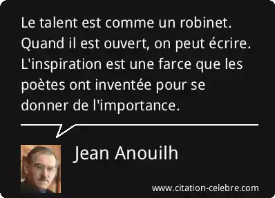 Le talent est comme un robinet. Quand il est ouvert, on peut écrire. L'inspiration est une farce que les poètes ont inventée pour se donner de l'importance.