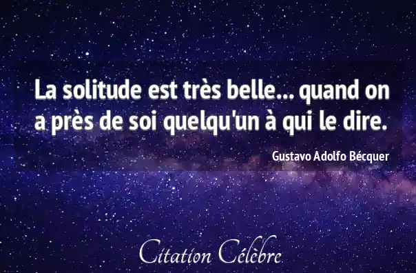 La solitude est très belle... quand on a près de soi quelqu'un à qui le dire.