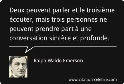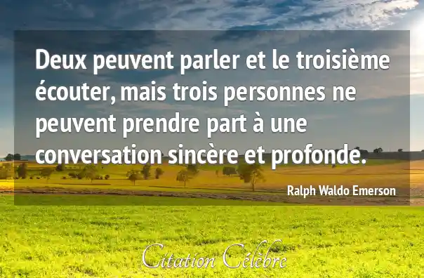 Deux peuvent parler et le troisième écouter, mais trois personnes ne peuvent prendre part à une conversation sincère et profonde.