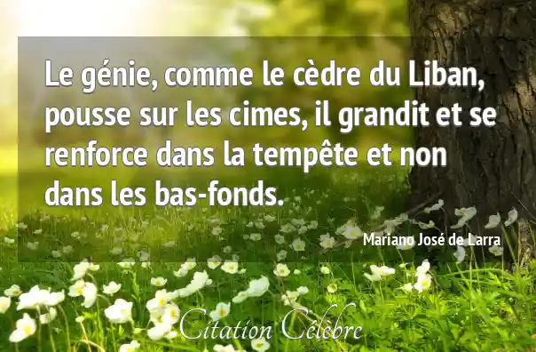Le génie, comme le cèdre du Liban, pousse sur les cimes, il grandit et se renforce dans la tempête et non dans les bas-fonds.
