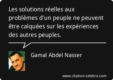 Citation Gamal Abdel Nasser autres : Les solutions réelles aux problèmes d'un peuple ne peuvent être...