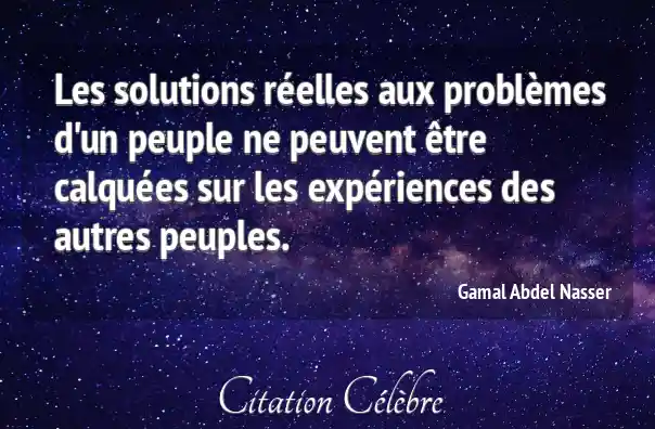 Les solutions réelles aux problèmes d'un peuple ne peuvent être calquées sur les expériences des autres peuples.