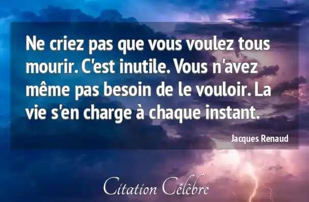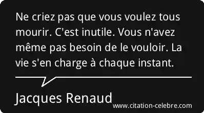 Ne criez pas que vous voulez tous mourir. C'est inutile. Vous n'avez même pas besoin de le vouloir. La vie s'en charge à chaque instant.