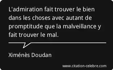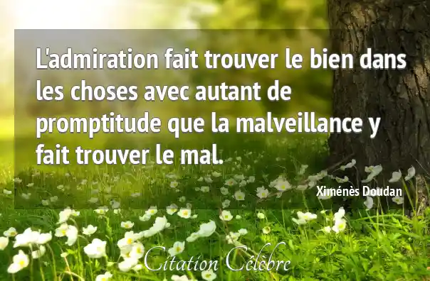 L'admiration fait trouver le bien dans les choses avec autant de promptitude que la malveillance y fait trouver le mal.