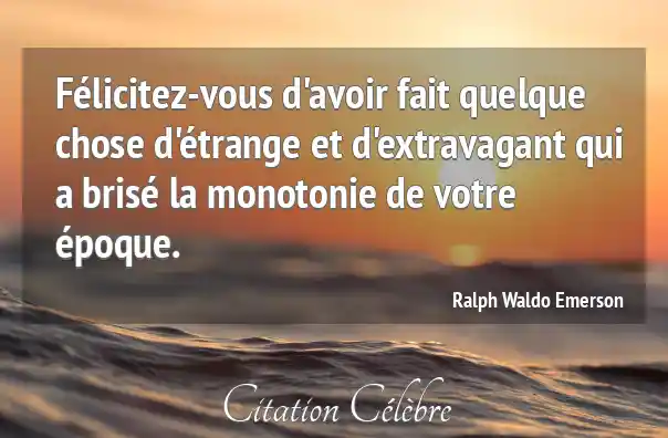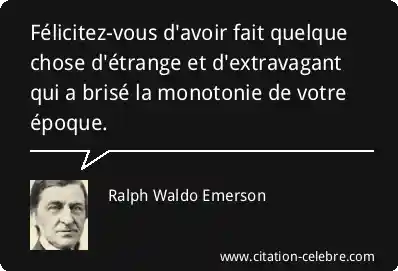 Félicitez-vous d'avoir fait quelque chose d'étrange et d'extravagant qui a brisé la monotonie de votre époque.