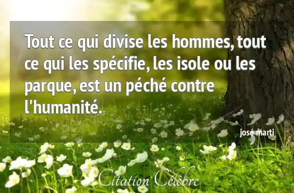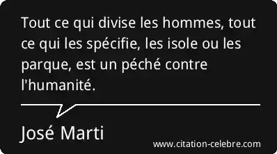 Tout ce qui divise les hommes, tout ce qui les spécifie, les isole ou les parque, est un péché contre l'humanité.