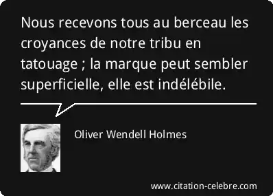 Nous recevons tous au berceau les croyances de notre tribu en tatouage ; la marque peut sembler superficielle, elle est indélébile.