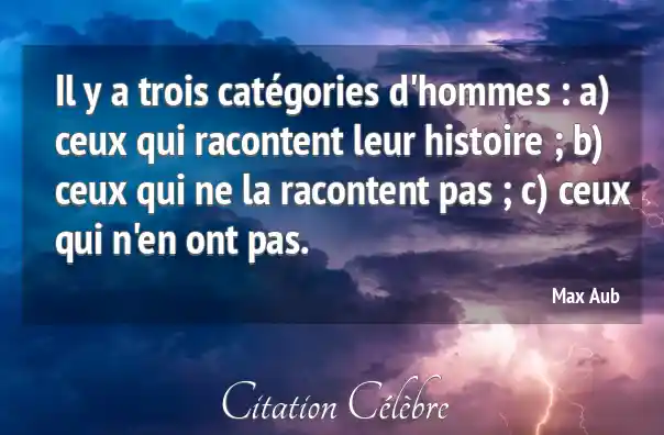 Il y a trois catégories d'hommes : a) ceux qui racontent leur histoire ; b) ceux qui ne la racontent pas ; c) ceux qui n'en ont pas.