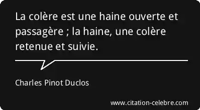 La colère est une haine ouverte et passagère ; la haine, une colère retenue et suivie.