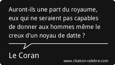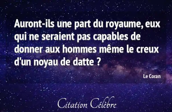 Auront-ils une part du royaume, eux qui ne seraient pas capables de donner aux hommes même le creux d'un noyau de datte ?