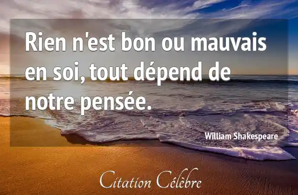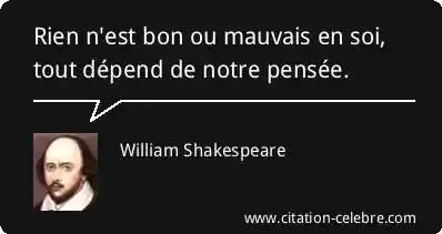 Rien n'est bon ou mauvais en soi, tout dépend de notre pensée.