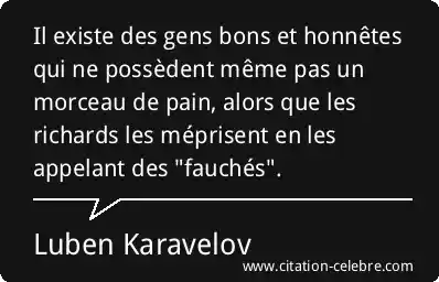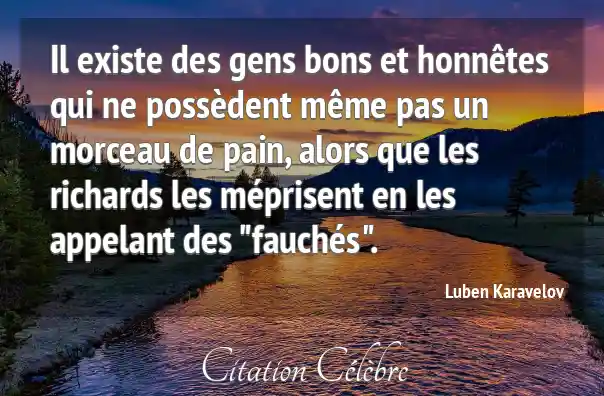 Il existe des gens bons et honnêtes qui ne possèdent même pas un morceau de pain, alors que les richards les méprisent en les appelant des "fauchés".