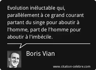 Evolution inéluctable qui, parallèlement à ce grand courant partant du singe pour aboutir à l'homme, part de l'homme pour aboutir à l'imbécile.