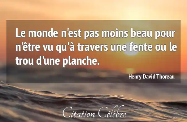 Le monde n'est pas moins beau pour n'être vu qu'à travers une fente ou le trou d'une planche.