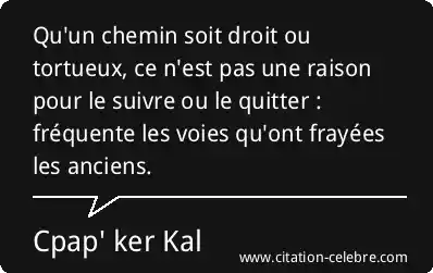 Qu'un chemin soit droit ou tortueux, ce n'est pas une raison pour le suivre ou le quitter : fréquente les voies qu'ont frayées les anciens.