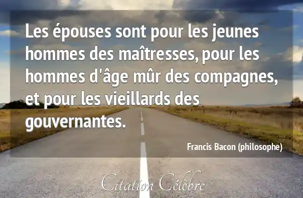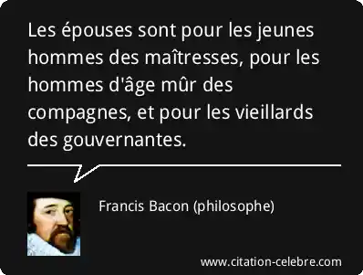 Les épouses sont pour les jeunes hommes des maîtresses, pour les hommes d'âge mûr des compagnes, et pour les vieillards des gouvernantes.