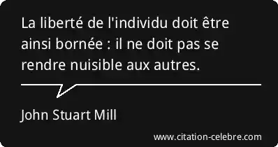 La liberté de l'individu doit être ainsi bornée : il ne doit pas se rendre nuisible aux autres.