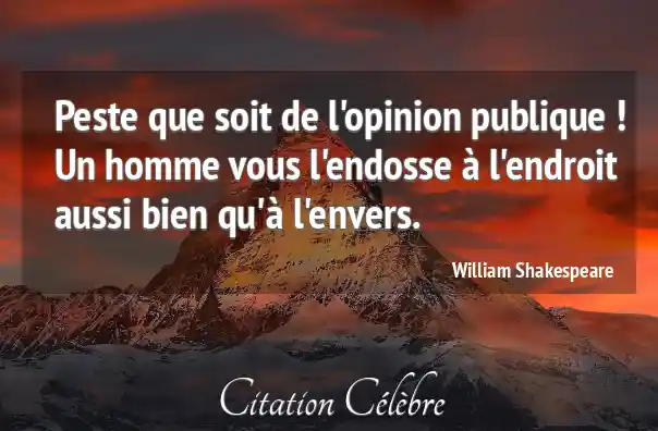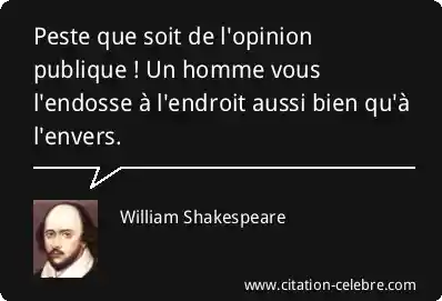 Peste que soit de l'opinion publique ! Un homme vous l'endosse à l'endroit aussi bien qu'à l'envers.