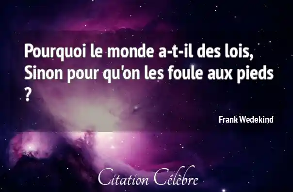 Pourquoi le monde a-t-il des lois, Sinon pour qu'on les foule aux pieds ?