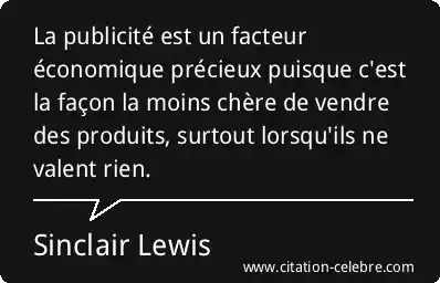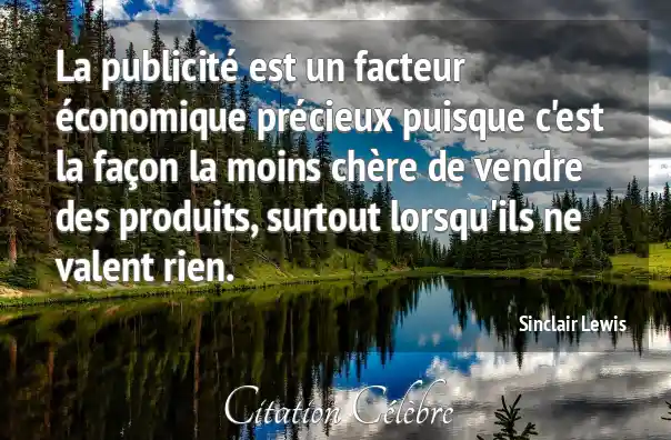 La publicité est un facteur économique précieux puisque c'est la façon la moins chère de vendre des produits, surtout lorsqu'ils ne valent rien.