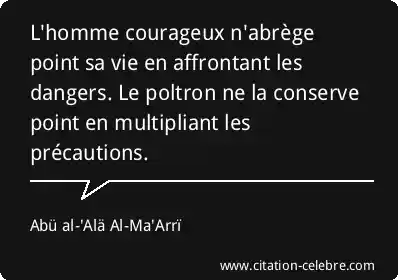 L'homme courageux n'abrège point sa vie en affrontant les dangers. Le poltron ne la conserve point en multipliant les précautions.