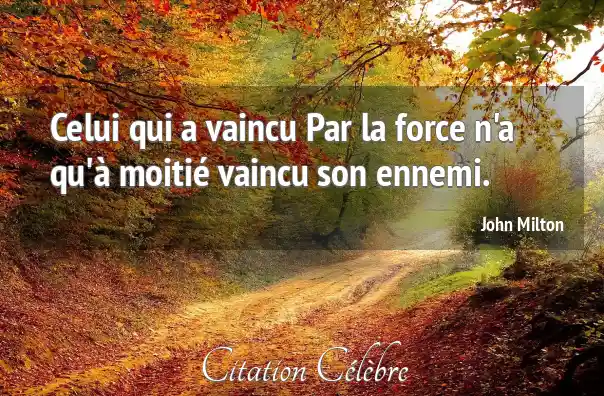 Celui qui a vaincu Par la force n'a qu'à moitié vaincu son ennemi.