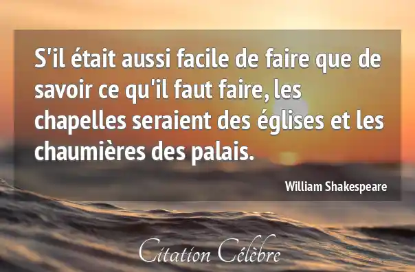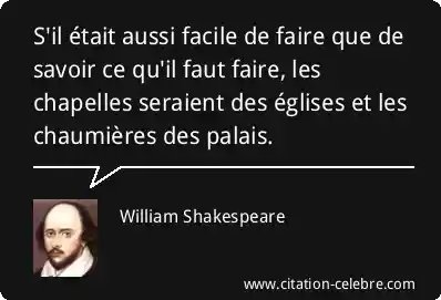 S'il était aussi facile de faire que de savoir ce qu'il faut faire, les chapelles seraient des églises et les chaumières des palais.