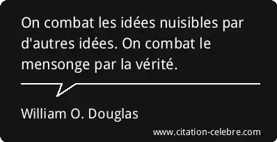 Citation William O. Douglas verite : On combat les idées nuisibles par d'autres idées. On combat...