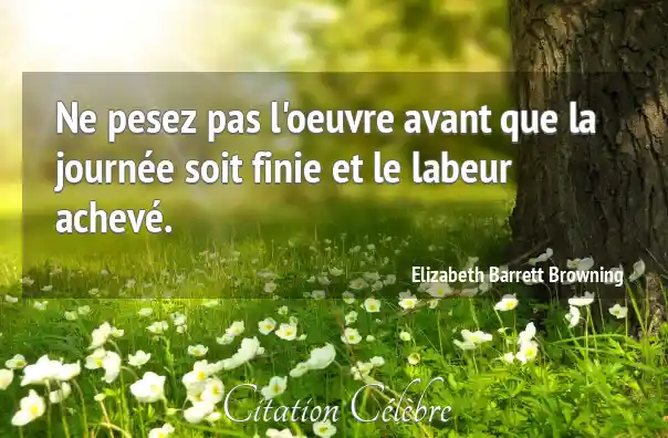 Ne pesez pas l'oeuvre avant que la journée soit finie et le labeur achevé.