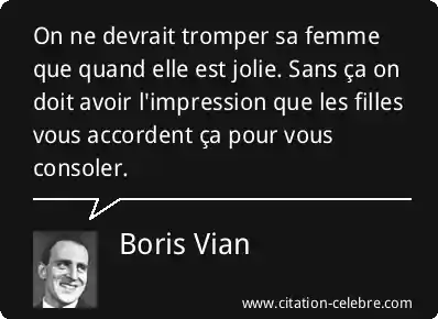On ne devrait tromper sa femme que quand elle est jolie. Sans ça on doit avoir l'impression que les filles vous accordent ça pour vous consoler.