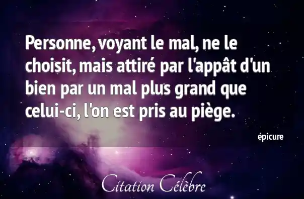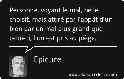 Personne, voyant le mal, ne le choisit, mais attiré par l'appât d'un bien par un mal plus grand que celui-ci, l'on est pris au piège.