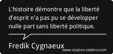 L'histoire démontre que la liberté d'esprit n'a pas pu se développer nulle part sans liberté politique.