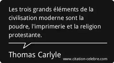Les trois grands éléments de la civilisation moderne sont la poudre, l'imprimerie et la religion protestante.