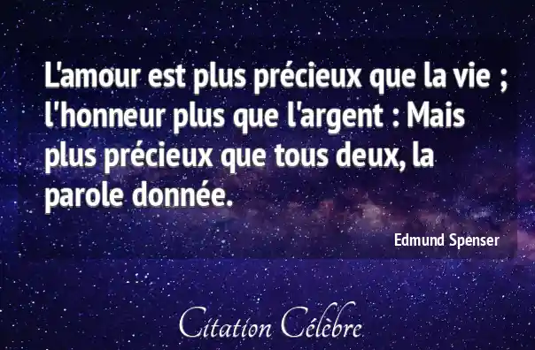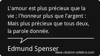 Citation Edmund Spenser amour : L'amour est plus précieux que la vie ; l'honneur plus...