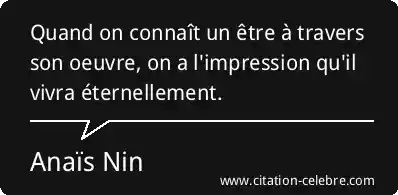 Quand on connaît un être à travers son oeuvre, on a l'impression qu'il vivra éternellement.
