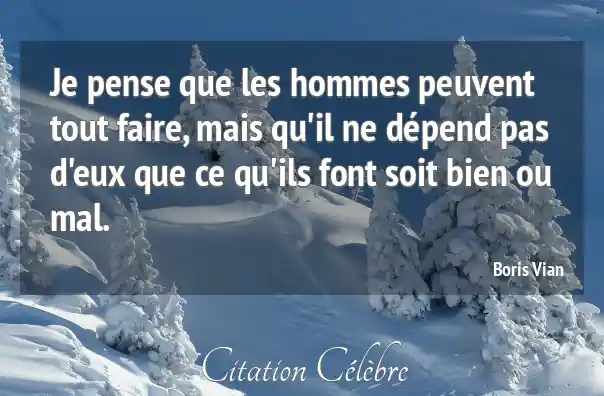 Je pense que les hommes peuvent tout faire, mais qu'il ne dépend pas d'eux que ce qu'ils font soit bien ou mal.