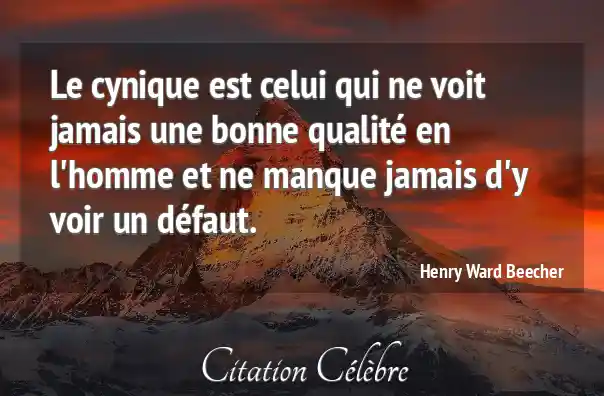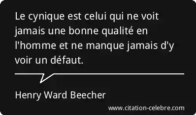 Le cynique est celui qui ne voit jamais une bonne qualité en l'homme et ne manque jamais d'y voir un défaut.