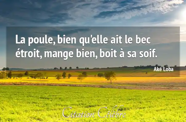 La poule, bien qu'elle ait le bec étroit, mange bien, boit à sa soif.