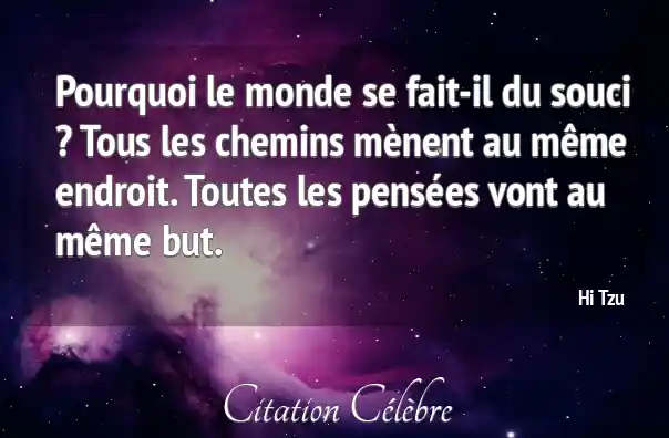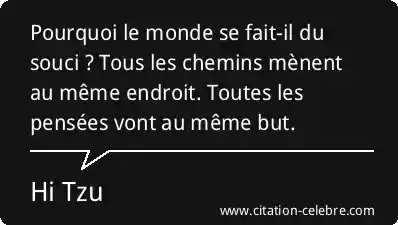 Pourquoi le monde se fait-il du souci ? Tous les chemins mènent au même endroit. Toutes les pensées vont au même but.
