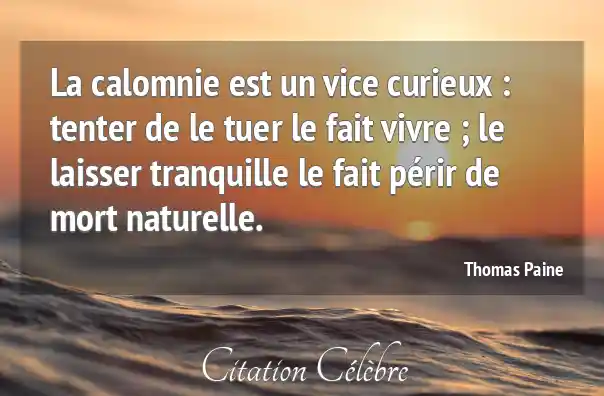 La calomnie est un vice curieux : tenter de le tuer le fait vivre ; le laisser tranquille le fait périr de mort naturelle.