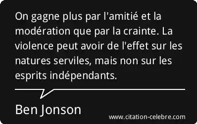 On gagne plus par l'amitié et la modération que par la crainte. La violence peut avoir de l'effet sur les natures serviles, mais non sur les esprits indépendants.