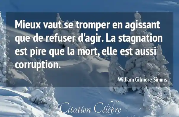Mieux vaut se tromper en agissant que de refuser d'agir. La stagnation est pire que la mort, elle est aussi corruption.