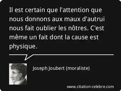 Il est certain que l'attention que nous donnons aux maux d'autrui nous fait oublier les nôtres. C'est même un fait dont la cause est physique.