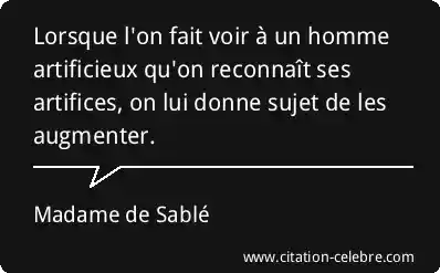 Lorsque l'on fait voir à un homme artificieux qu'on reconnaît ses artifices, on lui donne sujet de les augmenter.