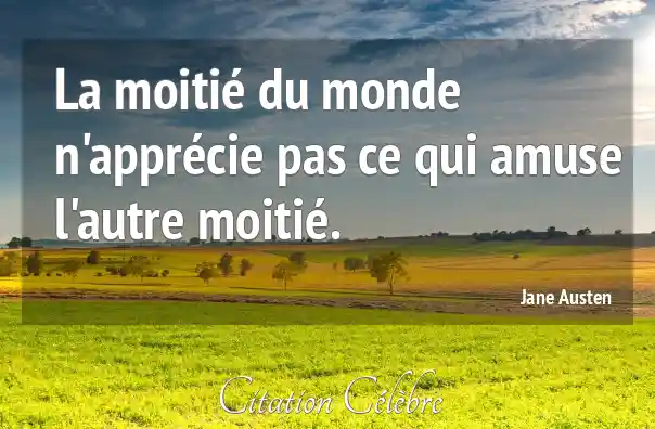 La moitié du monde n'apprécie pas ce qui amuse l'autre moitié.